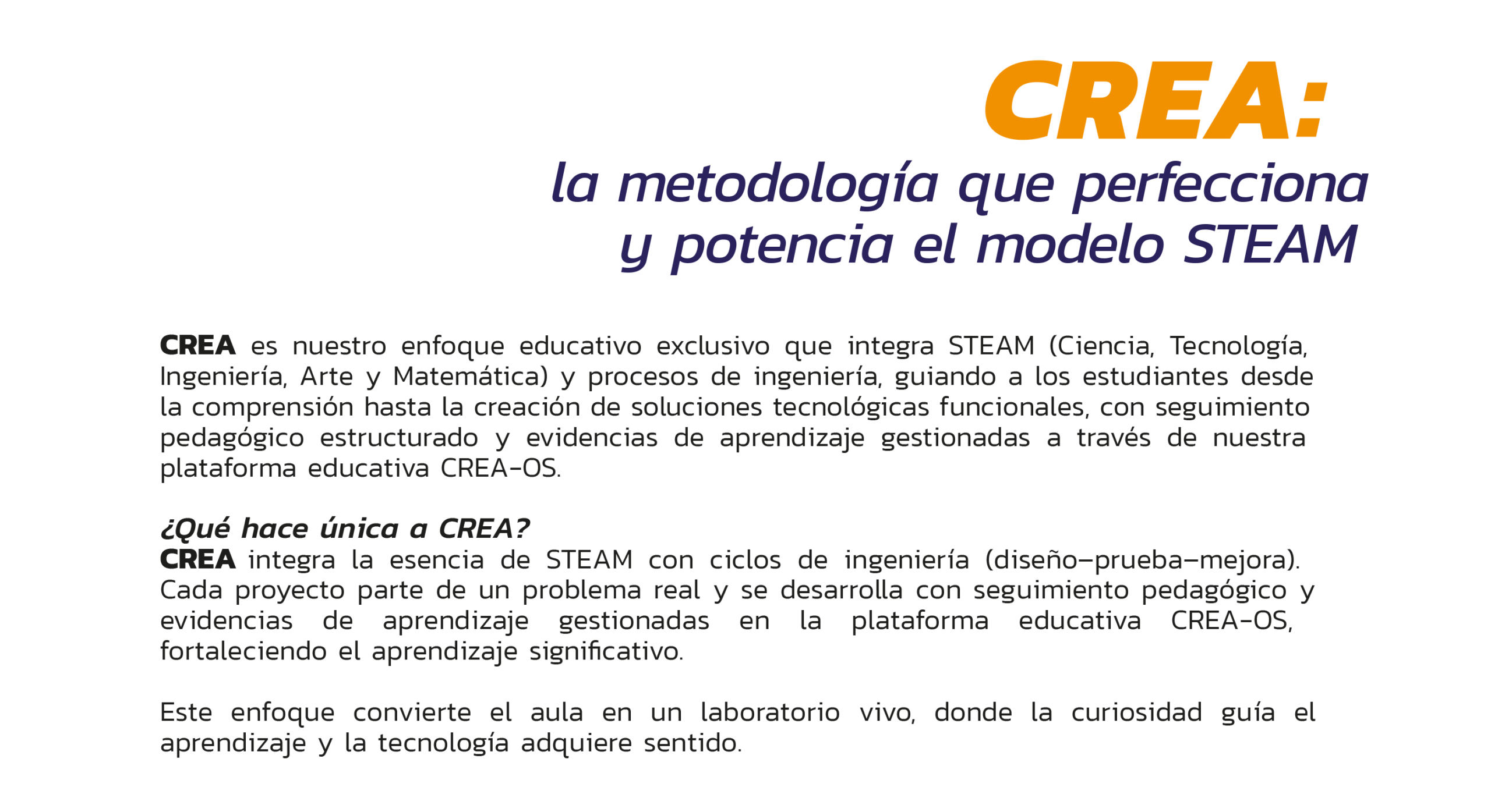 CONSTRUKTORS le ofrece su innovador modelo educativo STEAM, basado en aprendizaje profundo y desarrollo tecnológico real, capaz de llevar a sus estudiantes —en solo semanas— de la curiosidad a la creación.